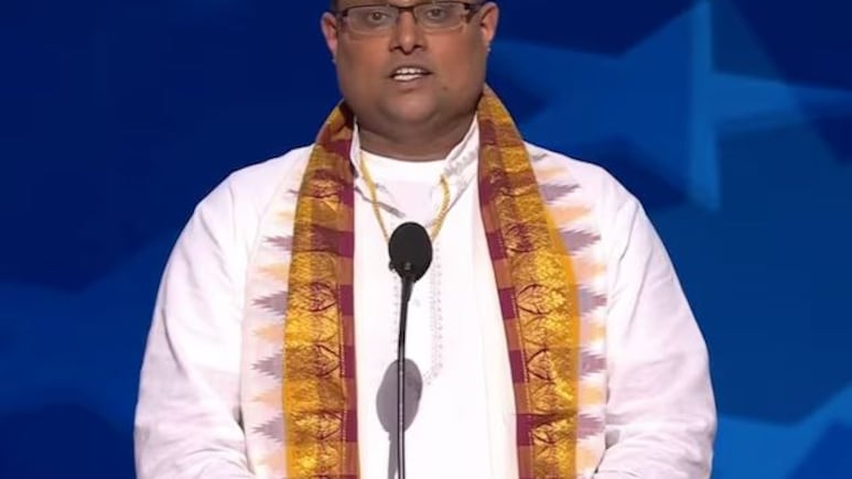शिकागो में डेमोक्रेटिक नेशनल कंवेशन के तीसरे दिन जब हिंदू पुजारी ने अपनी प्रोसीडिंग शुरू की तो पूरे हॉल में ओम शांति शांति के नारे गूंज उठे. मैरीलैंड के श्री शिव विष्णु मंदिर के पुजारी राकेश भट्ट ने एकजुट देश के लिए आशीर्वाद मांगते हुए वैदिक प्रार्थना की. राकेश भट्ट ने कहा,"भले ही हमारे बीच भेदभाव हो लेकिन जब भी बात राष्ट्र की आती है तो हमें एकजूट होना चाहिए."