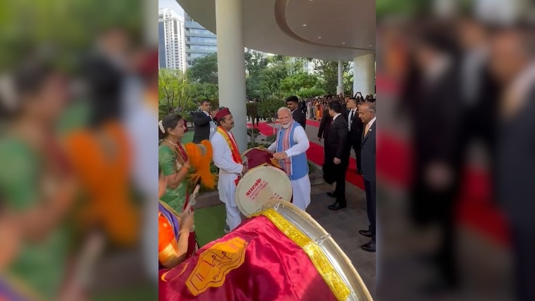 ब्रुनेई दौरे के बाद पीएम मोदी सिंगापुर के दौरे पर पहुंचे,जहां भारतीय समुदाय ने उनका भव्य स्वागत किया. पीएम मोदी यहां कुछ अलग अंदाज में ही नजर आए. वे महाराष्ट्र के रंग में रंगे दिखाई दिए. उन्होंने यहां जमकर ढोल बजाया.