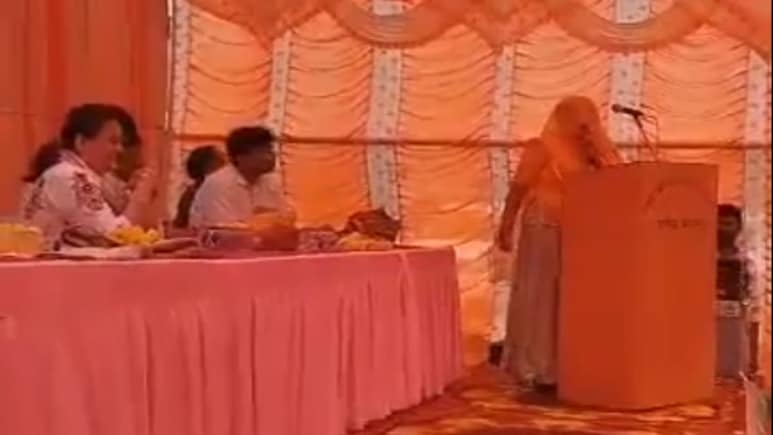 टीना डाबी के साथ मंच पर मौजूद महिला सरपंच ने अंग्रेजी में दिया भाषण