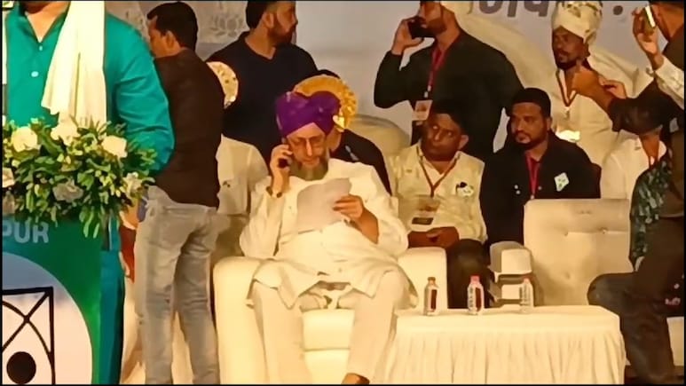 महाराष्ट्र के सोलापुर में असदुद्दीन ओवैसी को मंच पर नोटिस दिया गया.