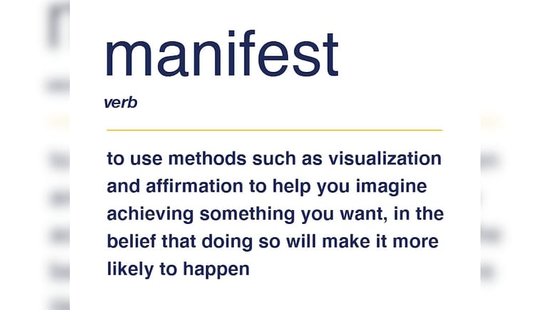 कैम्ब्रिज ने लिखा है कि इस वर्ड का प्रयोग अक्सर किसी लक्ष्य को हासिल करने की कल्पना करने के लिए किया जाता है,ताकि उसे अधिक संभव बनाया जा सके,यह विश्वास 100 वर्ष पुराने आध्यात्मिक दर्शन पर आधारित है. सेल्फ हेल्प कम्यूनिटी और सोशल मीडिया में लोकप्रिय इस शब्द का मुख्यधारा के मीडिया में बड़े पैमाने पर इस्तेमाल हुआ है. सिंगर दुडा लीपा,ओलंपिक जिमनास्ट सिमोन बाइल्स और इंग्लैंड के स्ट्राइकर ओली वॉटकिंस जैसी हस्तियां भी इस वर्ड का इस्तेमाल करती है.कहां से आया मैनीफेस्ट वर्ड