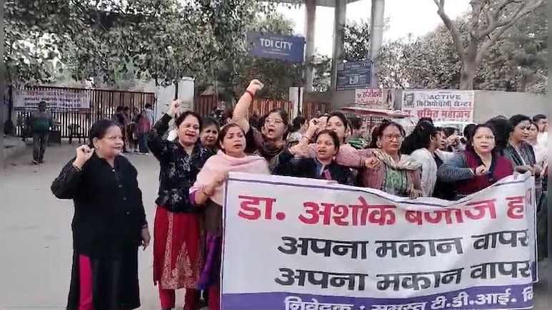 टीडीआई सिटी की महिलाएं कर रहीं विरोध