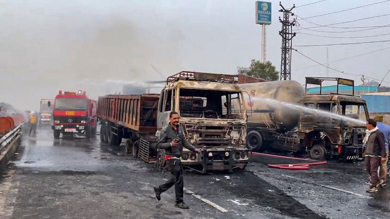 कुछ लोग झुलस गए हैं,जिन्हें एंबुलेंस के जरिए अस्पताल ले जाया गया है.' उन्होंने बताया कि यह घटना पेट्रोल पंप के सामने हुई और मौके पर दमकल की गाड़ियां मौजूद हैं और आग पर काबू पाने की कोशिश कर रही हैं. गुप्‍ता ने बताया कि एहतियातन राजमार्ग पर यातायात रोक दिया गया है.