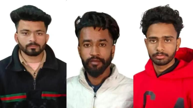 गुरविंदर सिंह पुत्र गुरुदेव सिंह,उम्र करीब 25 वर्ष निवासी मोहल्ला कलानौर,थाना कलानौर जिला गुरदासपुर,पंजाबवीरेंद्र सिंह उर्फ रवि पुत्र रंजीत सिंह उर्फ जीता उम्र करीब 23 वर्ष निवासी ग्राम अगवान थाना कलानौर जिला गुरदासपुर,पंजाबजसन प्रीत सिंह उर्फ प्रताप सिंह उम्र करीब 18 वर्ष निवासी ग्राम निक्का सूर,पंजाब
