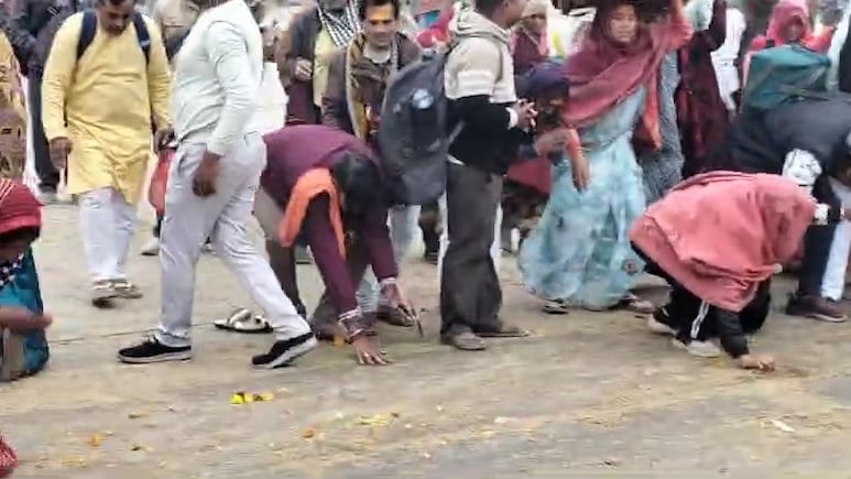 महाकुंभ : श्रद्धालुओं ने संतों के पथ की धूलि माथे पर लगाकर उनका श्रद्धापूर्वक सम्मान किया#MahaKumbh2025 pic.twitter.com/WiactaqwXD