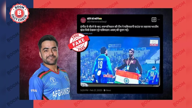 आईआईसी चैंपियंस ट्रॉफी 2025 में इंग्लैंड से शानदार जीत के बाद अफगानिस्तान टीम के सपोर्टिंग स्टाफ के सदस्य की तिरंगा लेकर जश्न मनाने के दावे से एक तस्वीर वायरल है. बूम ने जांच में पाया कि वायरल तस्वीर एडिट की गई है. मैच के ओरिजनरल फुटेज देखने पर पता चला कि उस दौरान टीम के किसी भी सदस्य के हाथ में तिरंगा नहीं था. तस्वीर में दिख रहा शख्स अफगानिस्तान क्रिकेट के मीडिया मैनेजमेंट टीम सदस्य नासिर खान हैं. बूम को नासिर ने बताया कि वह राशिद खान को गले लगाने जा रहे थे और तब उनके हाथ में कोई फ्लैग नहीं था.
