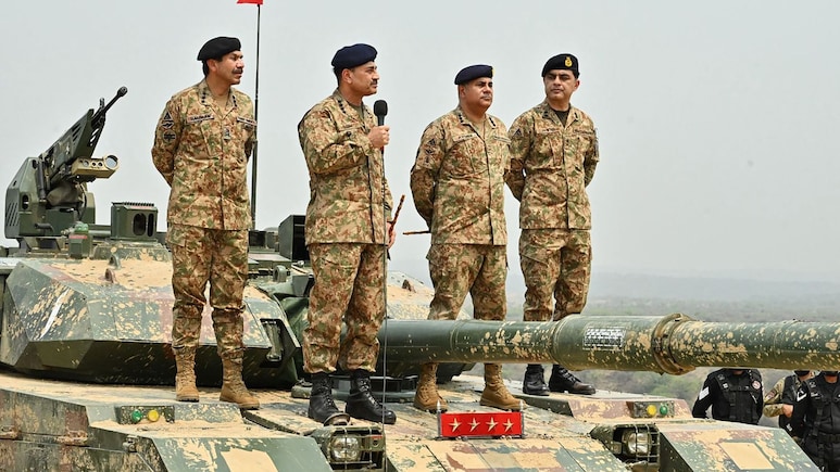 पाकिस्तान के सेना प्रमुख जनरल सैयद असीम मुनीर सेना की तैयारी देखते हुए (1 मई को तस्वीर जारी)